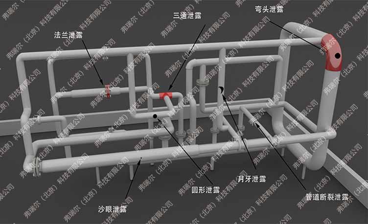 2、液体泄漏模拟:包括法兰面、设备管道焊缝、阀门等泄漏模拟。